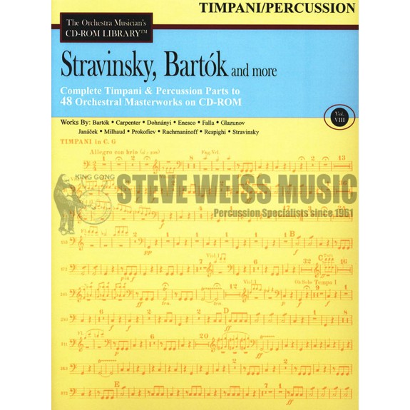 Build your own personal library of orchestral repertoire at an incredibly low price. The Orchestra Musician's CD-ROM Library™ is a compilation of printed parts, by instrument, of orchestral masterworks by the music world's most celebrated composers. This volume includes 50 orchestral works by Bartók, John Alden Carpenter, Ernst von Dohnànyi, Georges Enesco, Manuel de Falla, Alexander Glazunov, Leos Janáek, Darius Milhaud, Sergei Prokofiev, Sergei Rachmaninoff, Ottorino Respighi, Igor Stravinsky, and R. Vaughan Williams. CDs are available for Violin, Viola, Cello, Bass, Flute & Piccolo, Clarinet, Oboe, Horn, Bassoon, Trumpet & Cornet, Low Brass (which includes Trombone & Tuba), Timpani/Percussion, and Othe Instruments (harp, organ, piano, celesta, saxophone, mandolin, guitar, etc.). It's simple. Use the CD-ROM drive in your PC or Mac to view or print clear letter-sized copies. The Orchestra Musician's CD-ROM Library™ installs easily and quickly. Adobe Acrobat Reader technology is utilized (free download included on each CD), so no special access codes or software are required. Go to www.orchmusiclibrary.com for a complete listing of the contents of Volume 8.