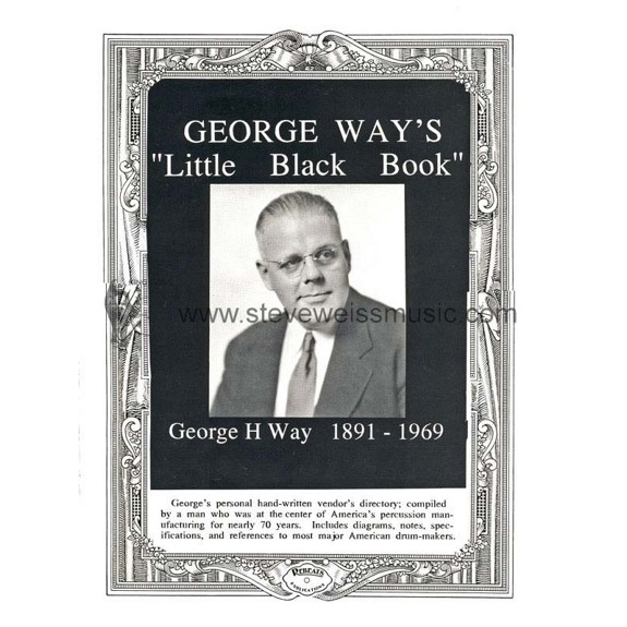 A brief biography of George Way, followed by a reproduction of his vendor directory; personal notes from George to himself about where he got brass, felt, etc. Specifications are on many pages, and a few manufacturing notes such as Leedy lacquered shells, etc.