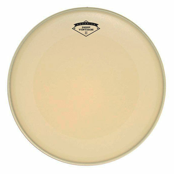 The Aquarian Deep Vintage II Super Kick Bass Drumhead delivers deep vintage tones with loss of resonance. The multi-ply vacuum molding process Aquarian uses eliminates dead air spots and adds depth and durability. Bonding of the 2x10mil plies along with the Aquarian Floating Muffle Ring increases low-end punch and definition.