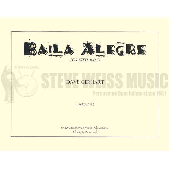 Baila Alegre (aka "Happy Dance") is a steel drum composition that explores two musical styles from the Caribbean: Soca from Trinidad and the Son Cubano from Cuba.