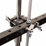 The Liberty One Rack Mount All allows the percussionist to mount assorted percussion accessories in various configurations. 6 knurled rods / cymbal stackers are included and fully customizable in the manor they are mounted to the 18" bar. The rack mounts to a standard stand via a V-Clamp.