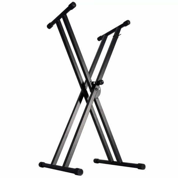 The On-Stage Double-X Keyboard Stand with Bolted Construction provides a wide, stable base and slip-free support for medium-format keyboards. This versatile stand adjusts in height and length to suit various keyboard sizes and playing styles and features adjustable nonslip arm sleeves to accommodate a variety of keyboard widths. The entire stand folds flat for convenient storage and transportation.