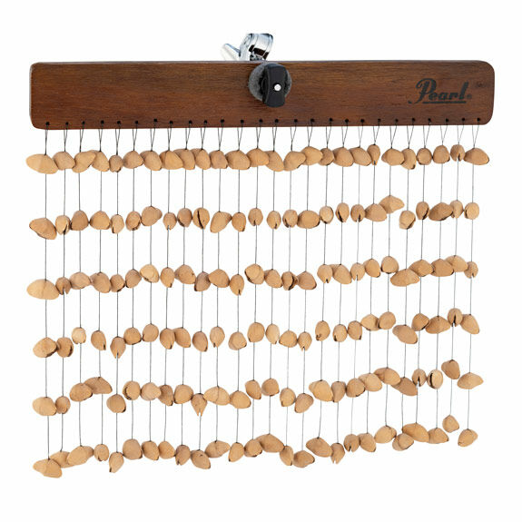 Pearl's Kenari Nut Windchime is a go-to choice for any professional percussionist. The instrument produces an distinctive earthy sound, featuring 26 strands of Kenari nuts, with each strand holding 6 nuts, tied and suspended from a mahogany crossbar. The hard, hollow shells of the nuts create miniature sound chambers, resulting in an immersive auditory experience.