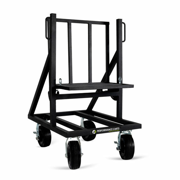 The Performance Carts Speaker Cart for Single Full-Range Speaker is designed to hold a full-range speaker at multiple angles. Strong, 3/8" eye bolts help hold you speakers securely in the cart. The rear support for the cradle can be moved into multiple positions without tools, allowing you to project your sound to all parts of the stadium. The flat panel at the front of the cart is an ideal location for your group's logo.