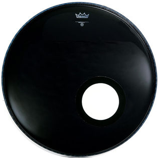 Remo Ebony Ambassador heads are medium-weight heads. Single ply 10 mil Mylar film produces an open, warm and resonant sound. Ebony Ambassador heads are known as the standard of the industry for the front of the bass drum. Features a 5", off-center port hole with the Dynamo ring framing the port.