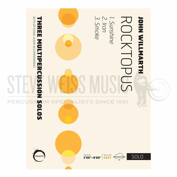 Rocktopus by John Willmarth is an beginner-level, 3-part solo for multipercussion, aimed at younger percussionists. Each movement is based on rhythmic themes from classic the rock songs Sunshine of Your Love by Cream, Iron Man by Black Sabbath, and Smoke on the Water by Deep Purple. The instrumentation for Rocktopus is very limited and gives students with only a drum set at home the ability to learn a multipercussion piece, not to mention an introduction into the concert world of percussion. Each movement also includes optional audio accompaniment, adding a fun extra dimension to performances!