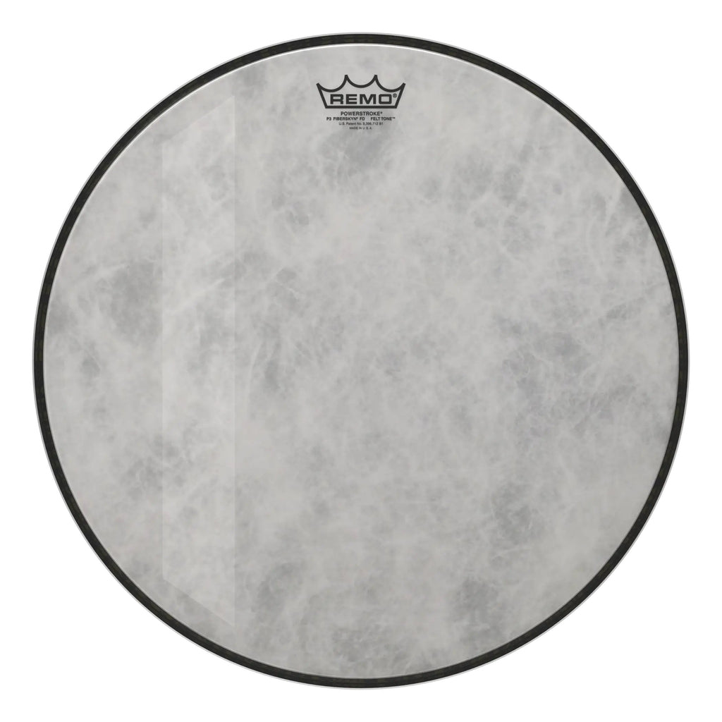 The Remo Powerstroke P3 Felt Tone Fiberskyn Diplomat Bass Drumhead feature a free floating felt strip built in to the head with out glues or adhesives. The tone produced has multiple vintage and contemporary musical applications.
