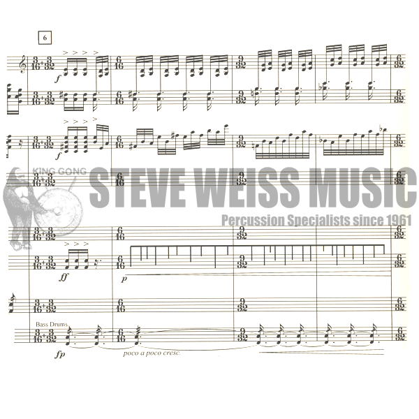 Player 4: 2 Bass Drums, 4 Mokusho, 2 Tam-Tams, Suspended Cymbal, Bell Tree, 3 Kin, Finger Cymbal, Chinese Cymbal, Ratchet