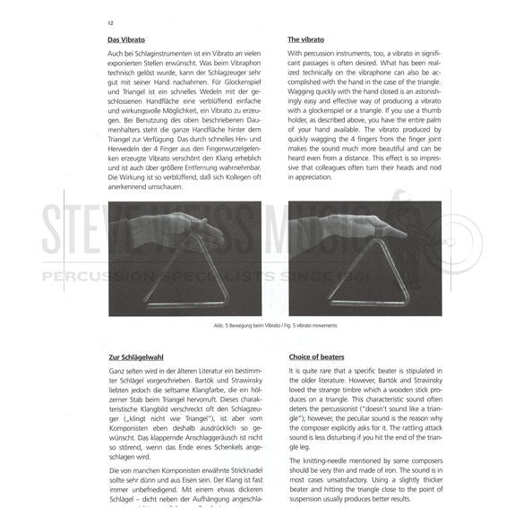 Orchestral Practice for Triangle & Tambourine by Klaus Karger focuses on development of skills of these instruments. This is an excellent guide to diversifying performer techniques and taking overall orchestral percussion skills to a professional level. Text in German and English.