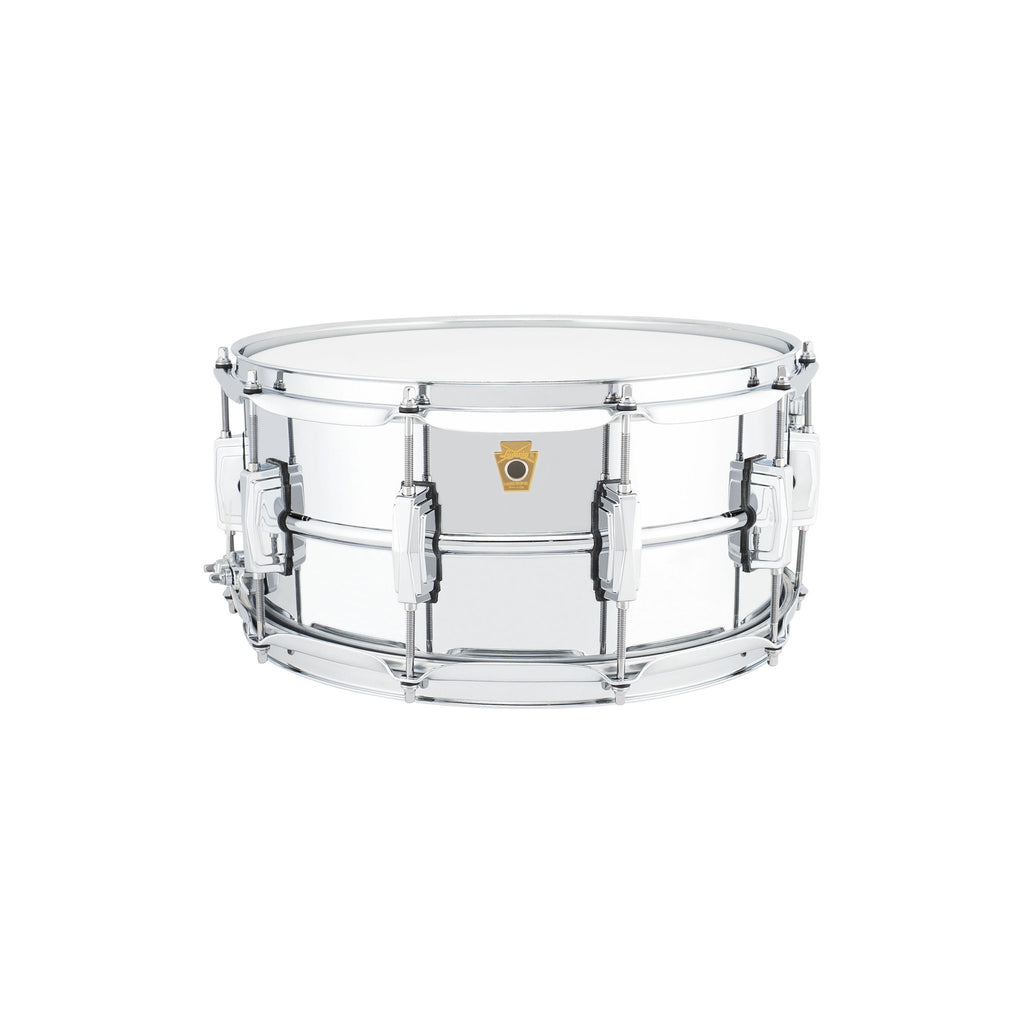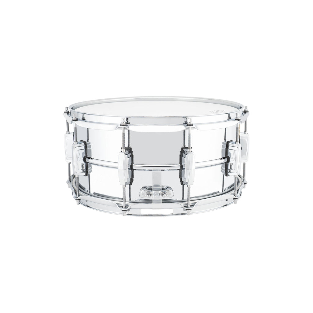 This Ludwig LM402 is a 14x6.5 Chrome Plated Aluminum shell snare drum and features Supraphonic snares and Imperial lugs.