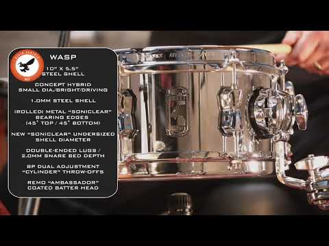 The Mapex Black Panther Wasp Steel Snare Drum is a small diameter snare drum that delivers tight, dry sound that projects with some musical sting.