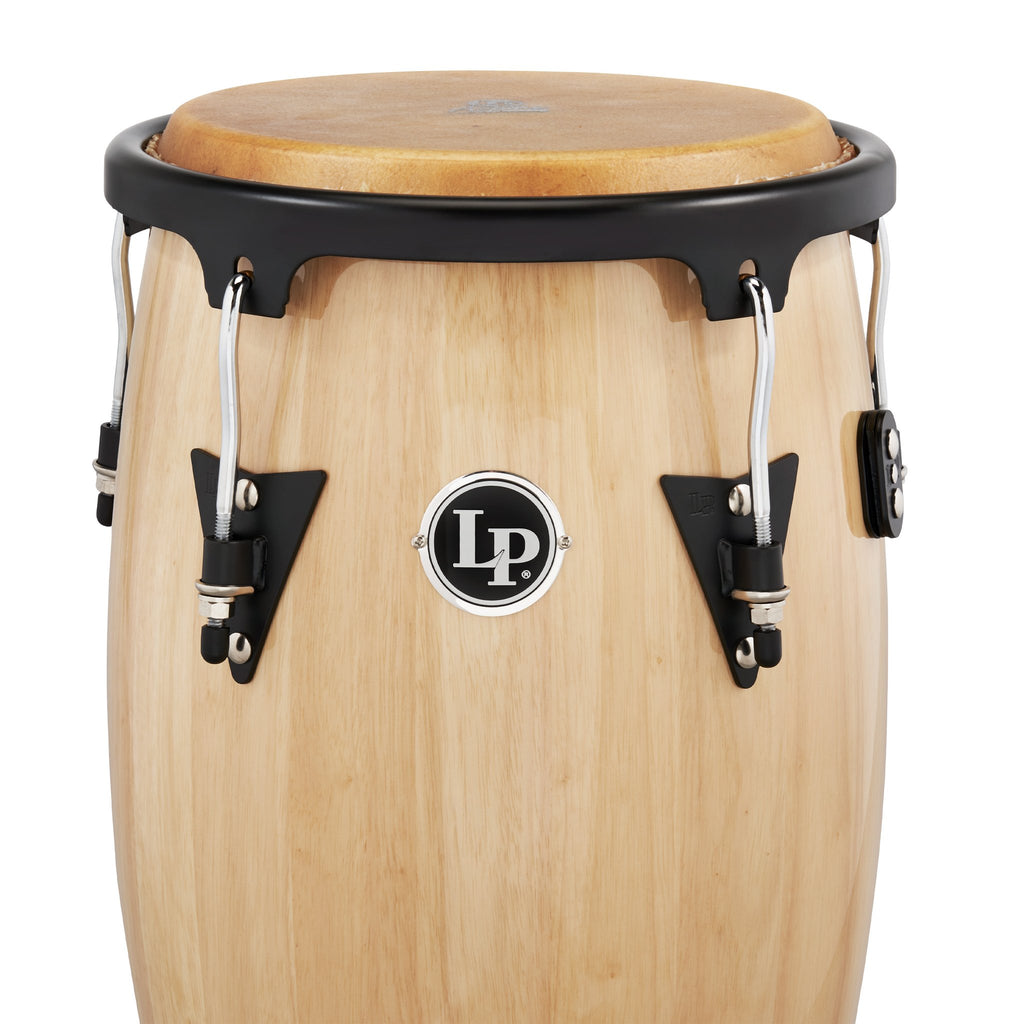 This LP Aspire wood Conga Sets features an 11" Conga and 12" Tumba that includes a height adjustable LP Aspire Double Conga Stand. The drums measure 28" tall, and are crafted from kiln dried, environmentally friendly Siam Oak. Black, powder coated LP Aspire side plates are a great design accent. Features 1/4" tuning lugs and EZ Curve Rims which have improved strength, a unique skin wire channel, and a curved surface that provides great playing comfort. Includes natural rawhide tucked heads and a tuning wrench.