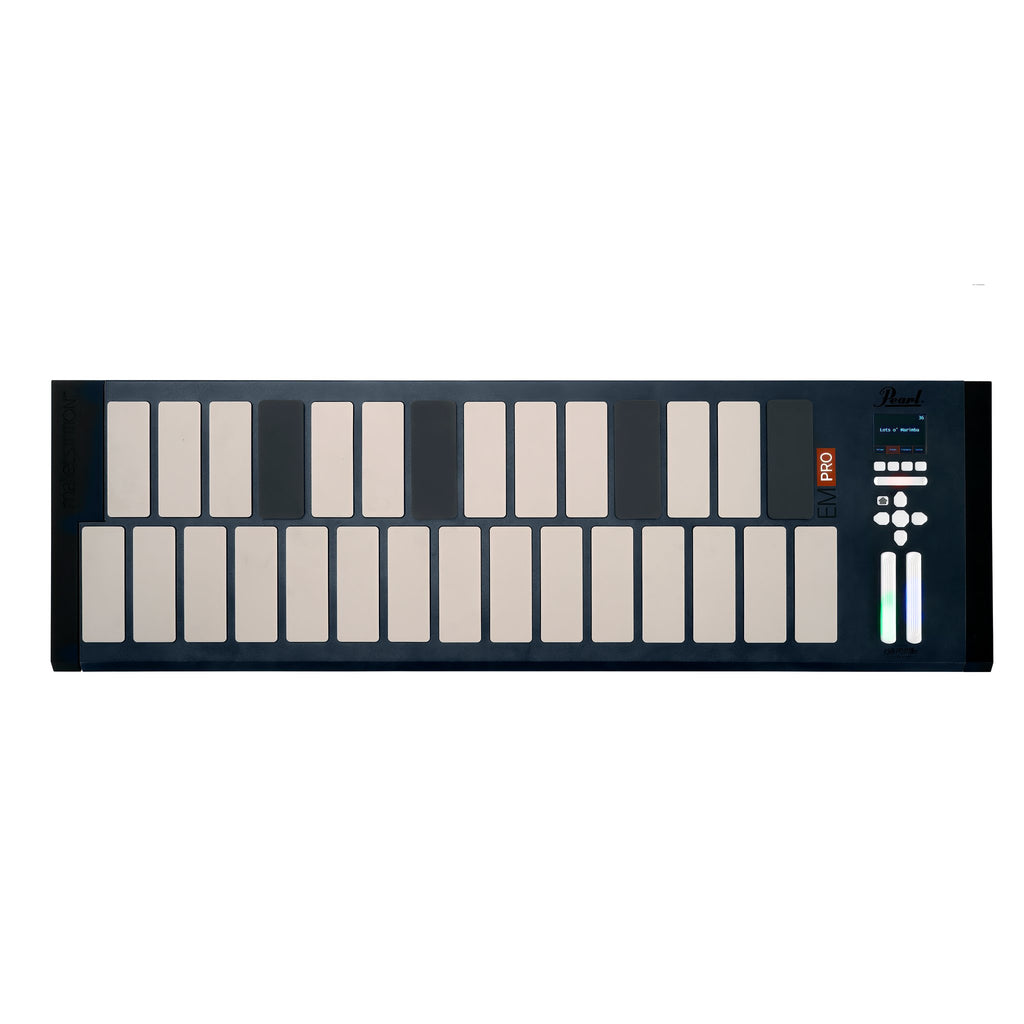 The Pearl malletSTATION EM Pro 2.0 Octave Control Module expands upon the innovative design of the EM1 by adding a 32-bit multiprocessor resulting in increased bar precision, accuracy, and extended dynamic range. The EM Pro features a full-color, multi-line screen for navigation, programmable backlit touch-sensitive buttons and control sliders, both USB and 5-pin MIDI connectivity. The standard design is 2.0 octaves but expansion modules are available increasing the range to 5.0 octaves.
